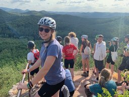 Juli 2023. 18 Teilnehmende des Freiwilligen Ökologischen Jahres (FÖJ) in Rheinland-Pfalz erkunden im Zuge eines Kooperationsprojektes mit dem Landesverband der Schutzgemeinschaft Deutscher Wald (SDW-RLP) eine Woche lang mit E-Bikes das Biosphärenreservat Pfälzerwald.